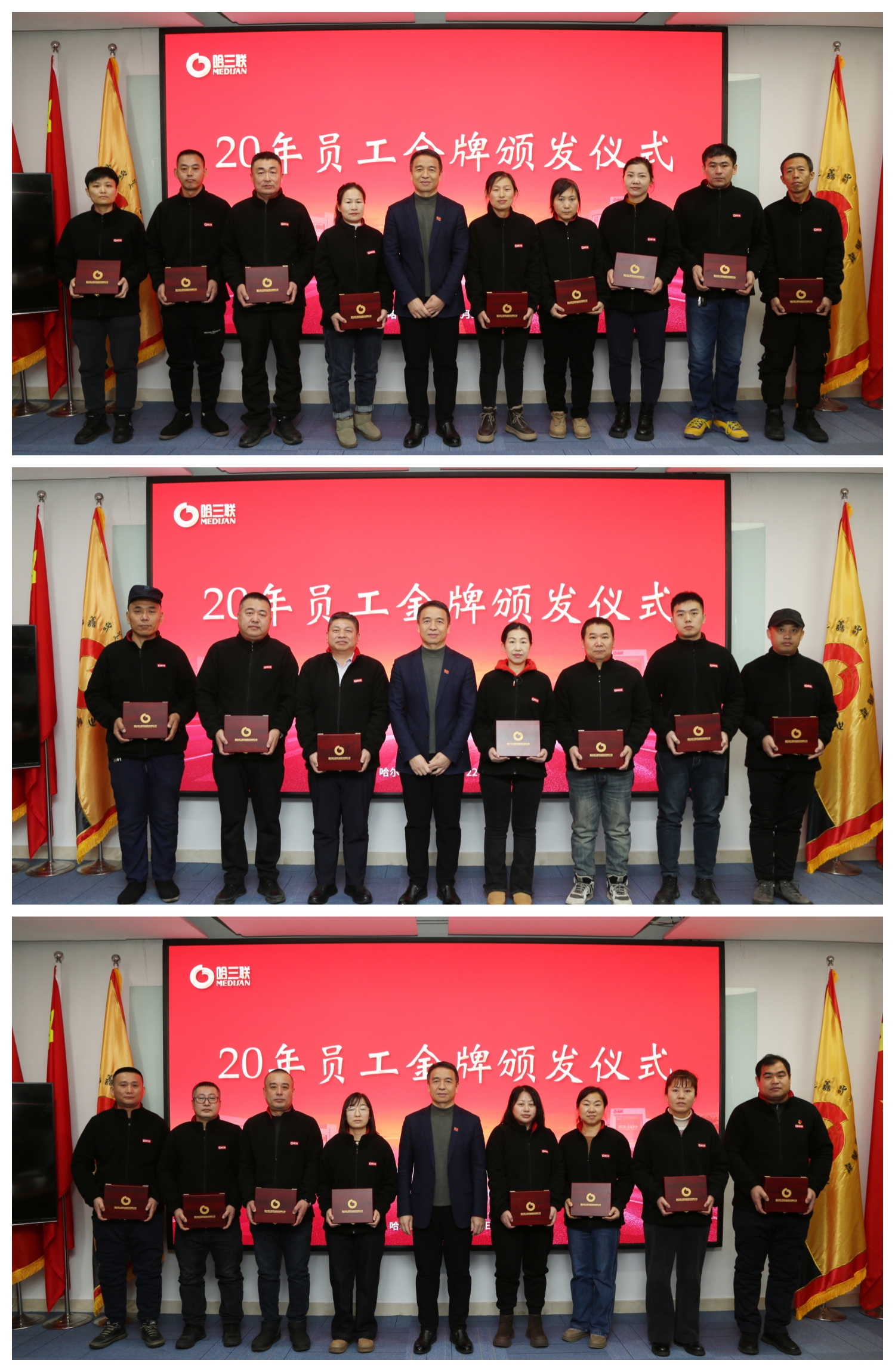 儀式上,哈三聯(lián)為入職十年、二十年員工代表頒發(fā)紀(jì)念金牌,感恩攜手同行,風(fēng)雨同舟。